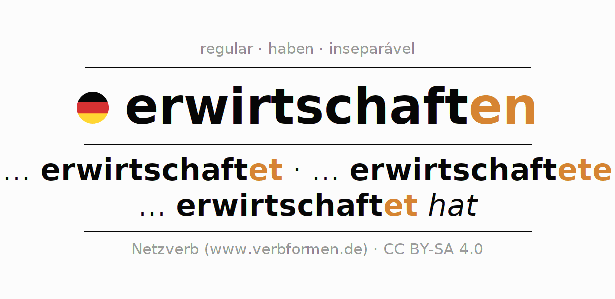 A conjugação do verbo erwirtschaften (gerar, obter) é regular. As formas mais comuns são ... erwirtschaftet, ... erwirtschaftete e ... erwirtschaftet hat. O verbo auxilar para erwirtschaften é "haben".