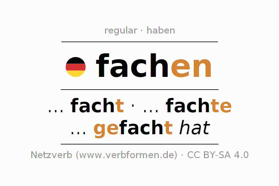 A conjugação do verbo fachen (acender, classificar) é regular. As formas mais comuns são ... facht, ... fachte e ... gefacht hat. O verbo auxilar para fachen é "haben".