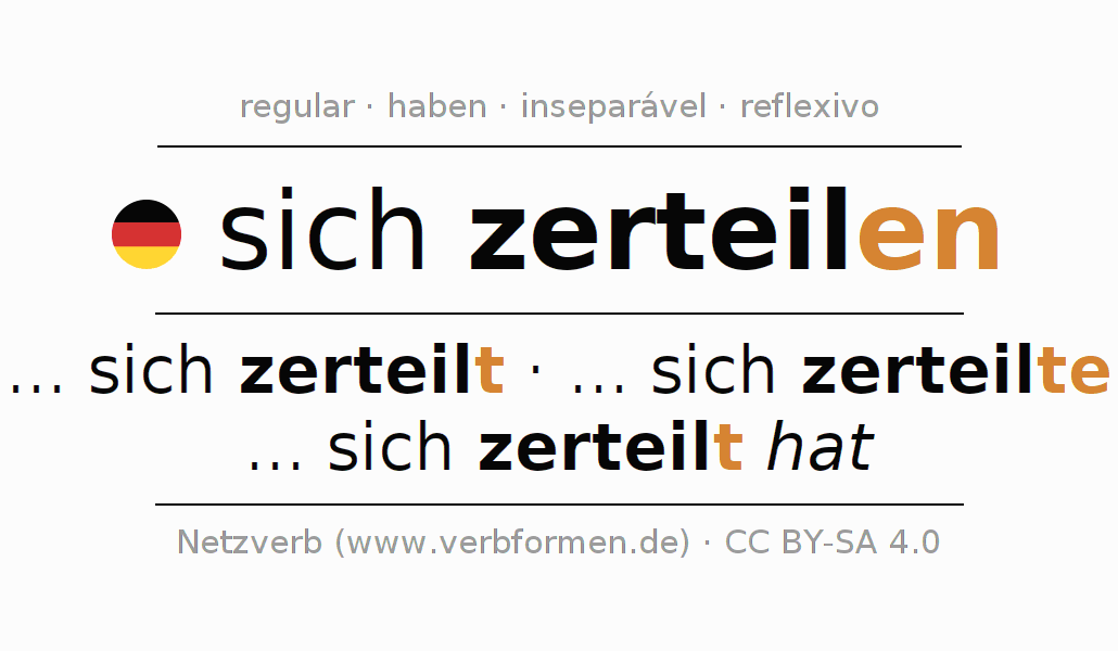 Conjugação simples no presente, pretérito, imperativo e conjuntivo do verbo sich zerteilen