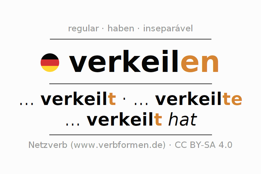 Conjugação simples no presente, pretérito, imperativo e conjuntivo do verbo verkeilen