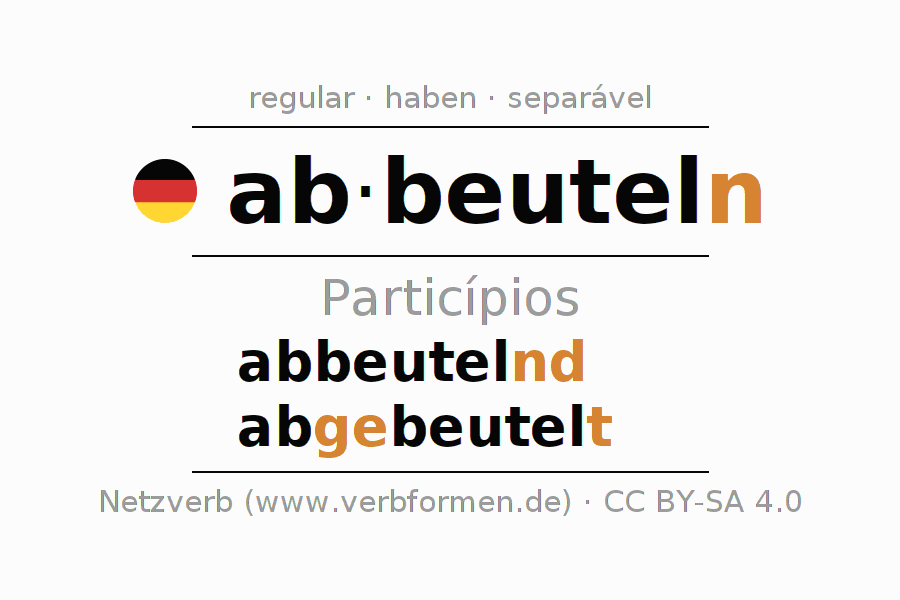 O verbo abbeuteln é totalmente conjugado em todas as pessoas e números no Particípio Presente Perfeito
