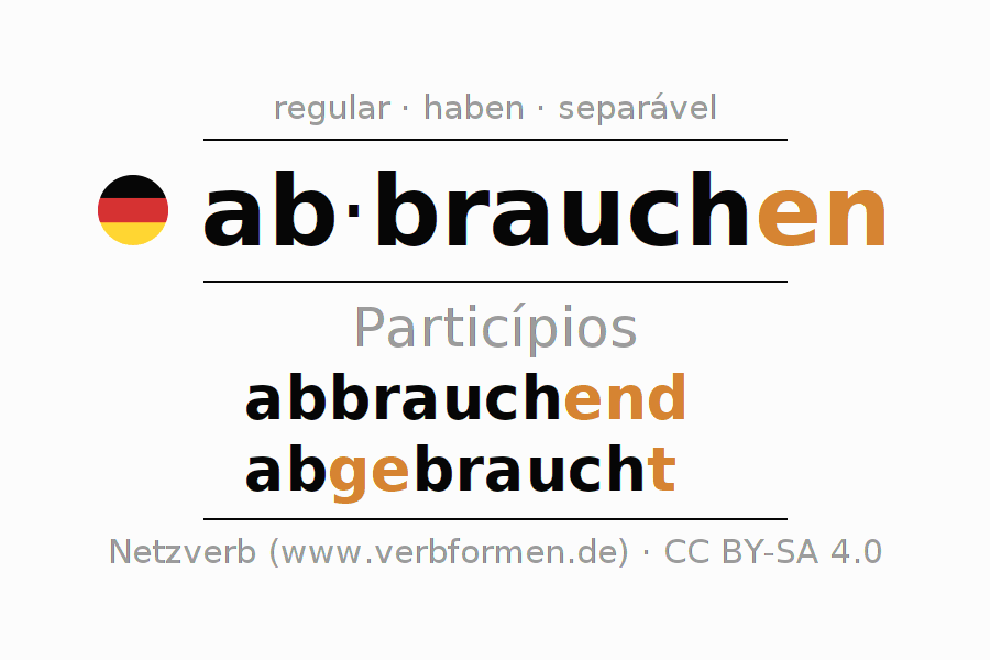 O verbo abbrauchen é totalmente conjugado em todas as pessoas e números no Particípio Presente Perfeito