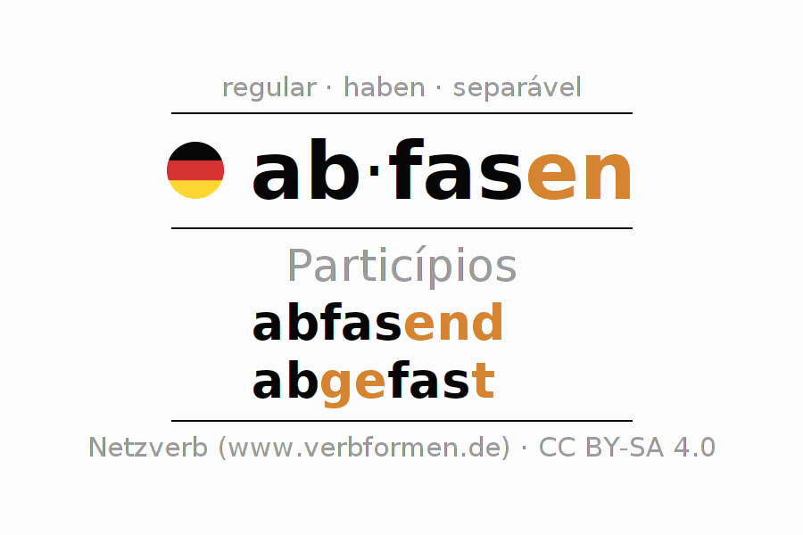 O verbo abfasen é totalmente conjugado em todas as pessoas e números no Particípio Presente Perfeito