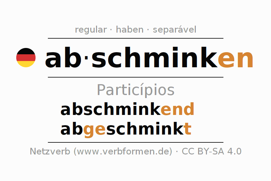 As formas do particípio para o verbo abschminken (desmaquilhar, abandonar) são: abschminkend, abgeschminkt