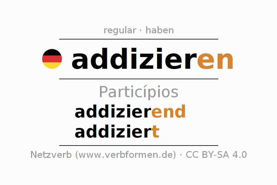 As formas do particípio para o verbo addizieren (atribuir, conceder) são: addizierend, addiziert