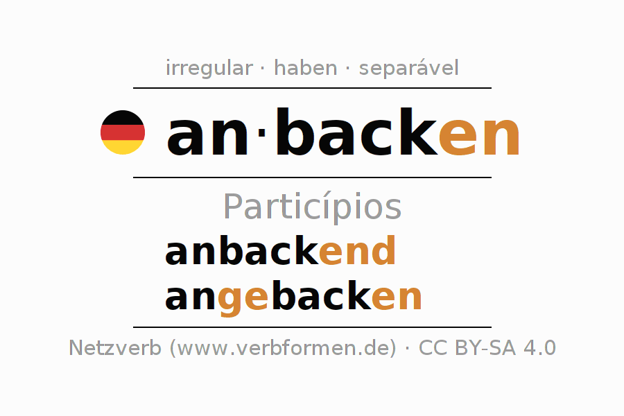 As formas do particípio para o verbo anbacken (assar brevemente, assar parcialmente) são: anbackend, angebacken