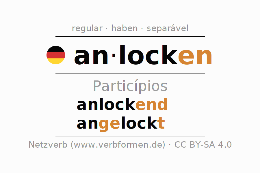 As formas do particípio para o verbo anlocken (atrair, chamar) são: anlockend, angelockt