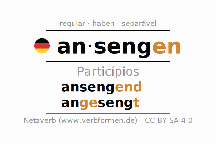 O verbo ansengen é totalmente conjugado em todas as pessoas e números no Particípio Presente Perfeito