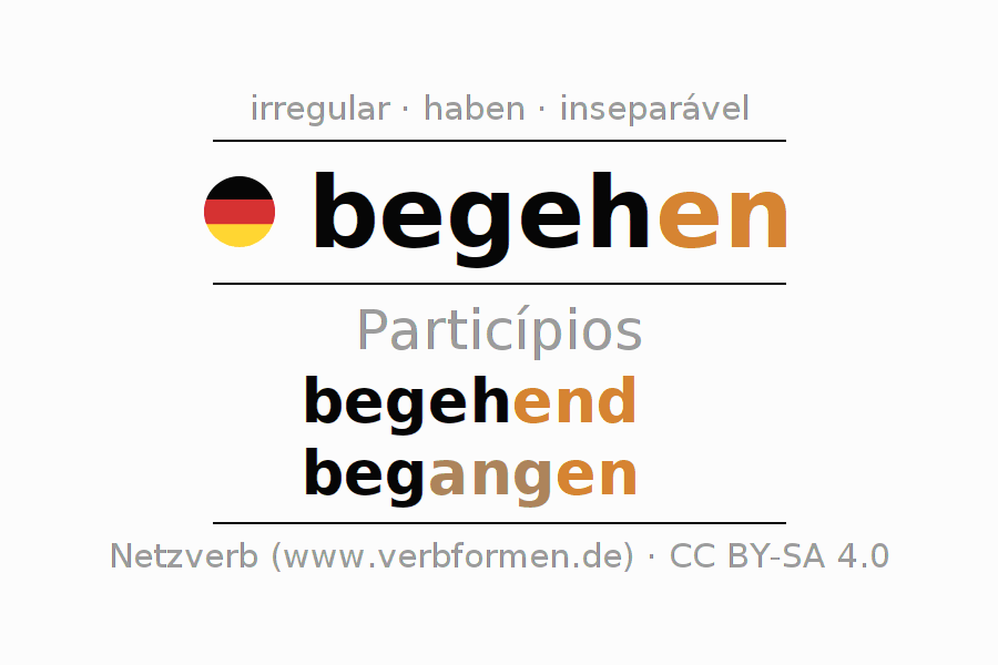 O verbo begehen é totalmente conjugado em todas as pessoas e números no Particípio Presente Perfeito