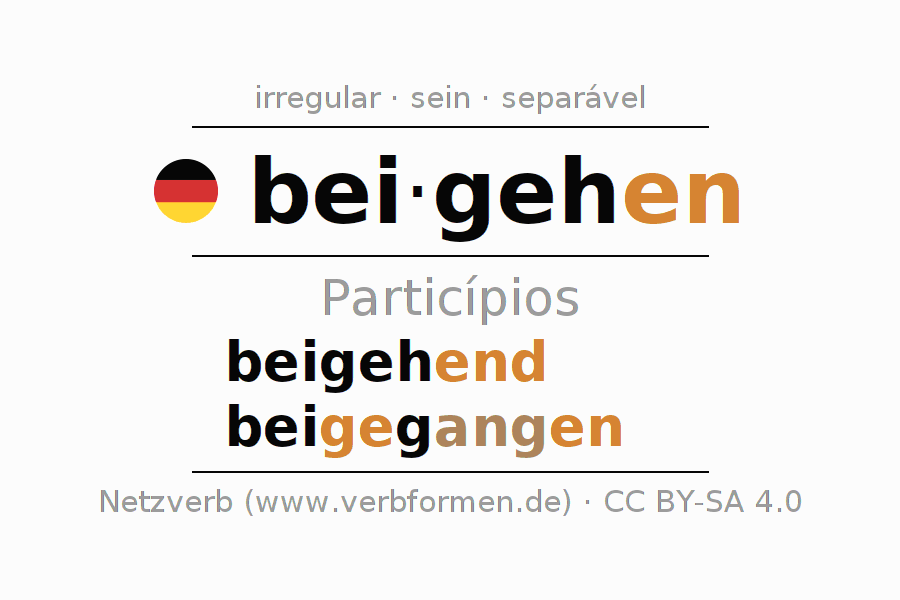 O verbo beigehen é totalmente conjugado em todas as pessoas e números no Particípio Presente Perfeito