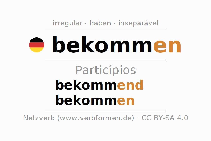 As formas do particípio para o verbo bekommen (receber, obter) são: bekommend, bekommen