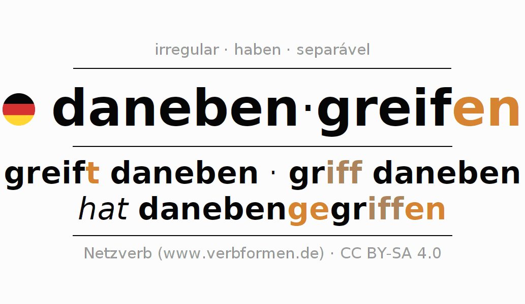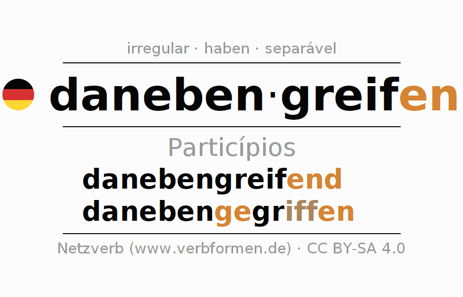 O verbo danebengreifen é totalmente conjugado em todas as pessoas e números no Particípio Presente Perfeito