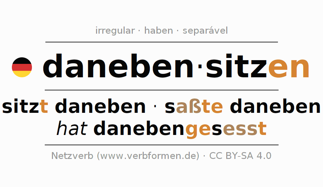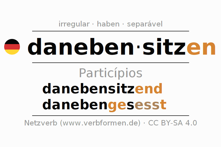 O verbo danebensitzen é totalmente conjugado em todas as pessoas e números no Particípio Presente Perfeito