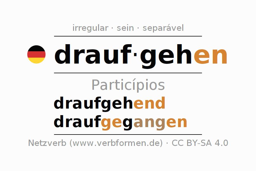 O verbo draufgehen é totalmente conjugado em todas as pessoas e números no Particípio Presente Perfeito