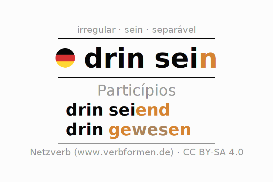O verbo drinsein é totalmente conjugado em todas as pessoas e números no Particípio Presente Perfeito