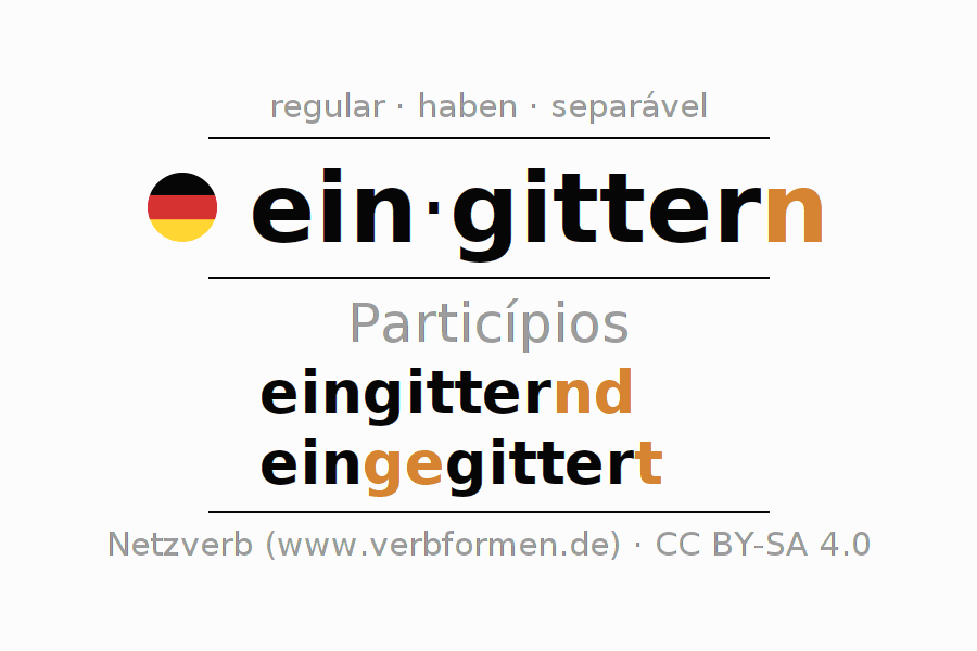 O verbo eingittern é totalmente conjugado em todas as pessoas e números no Particípio Presente Perfeito