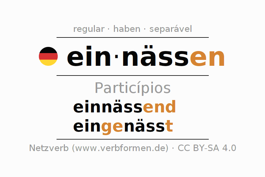 As formas do particípio para o verbo einnässen (urinar, enurese) são: einnässend, eingenässt
