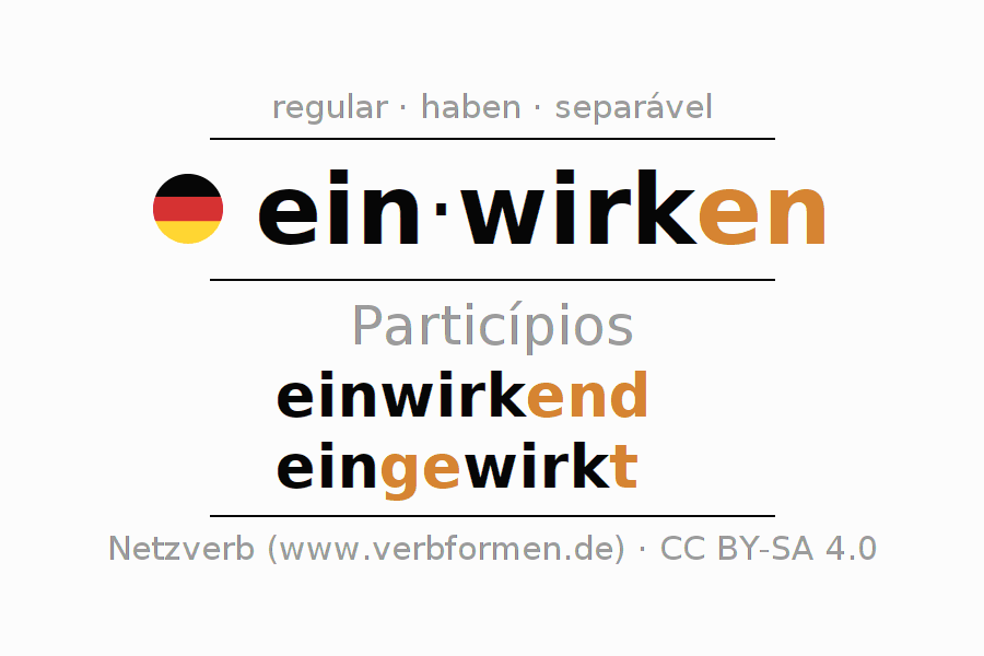 O verbo einwirken é totalmente conjugado em todas as pessoas e números no Particípio Presente Perfeito