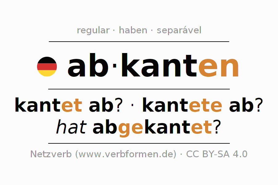 O verbo abkanten é totalmente conjugado em todas as pessoas e números no Particípio Presente Perfeito