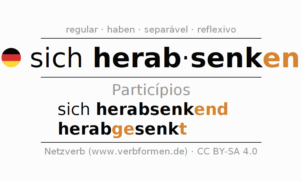 O verbo sich herabsenken é totalmente conjugado em todas as pessoas e números no Particípio Presente Perfeito