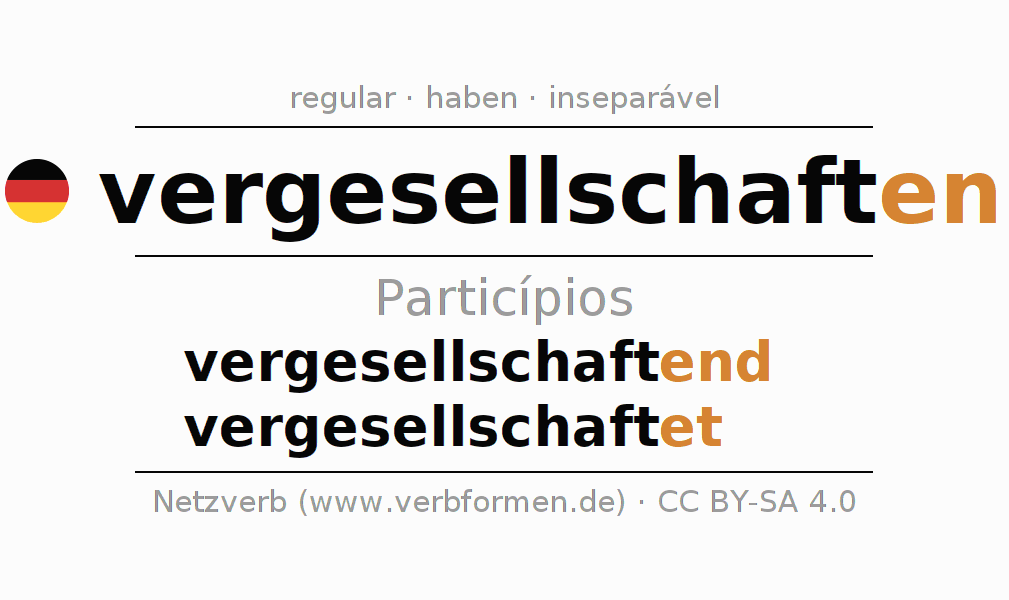 O verbo vergesellschaften é totalmente conjugado em todas as pessoas e números no Particípio Presente Perfeito