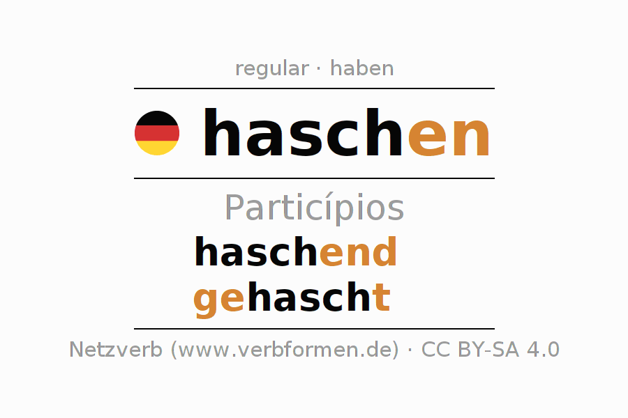 As formas do particípio para o verbo haschen (capturar, pegar) são: haschend, gehascht