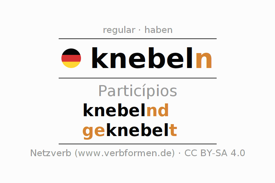 O verbo knebeln é totalmente conjugado em todas as pessoas e números no Particípio Presente Perfeito
