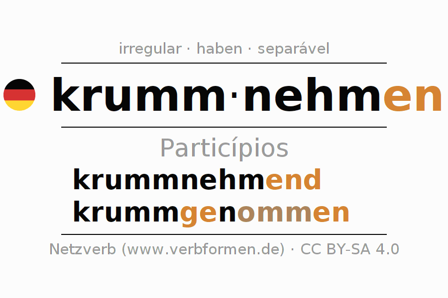 As formas do particípio para o verbo krummnehmen (levar a mal, maltratar) são: krummnehmend, krummgenommen