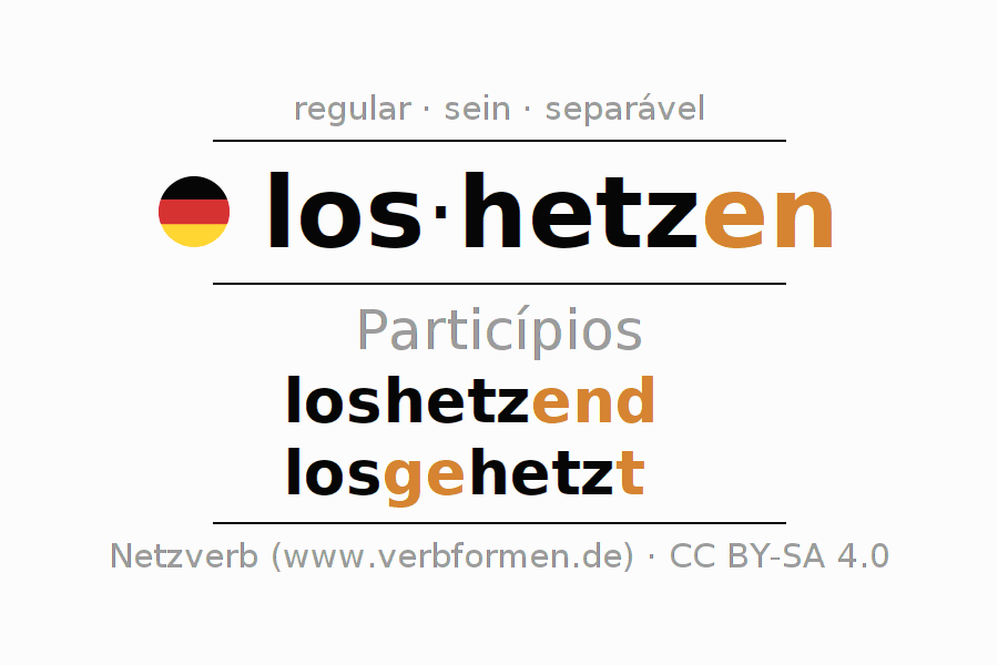 As formas do particípio para o verbo loshetzen (incitar, instigar) são: loshetzend, losgehetzt