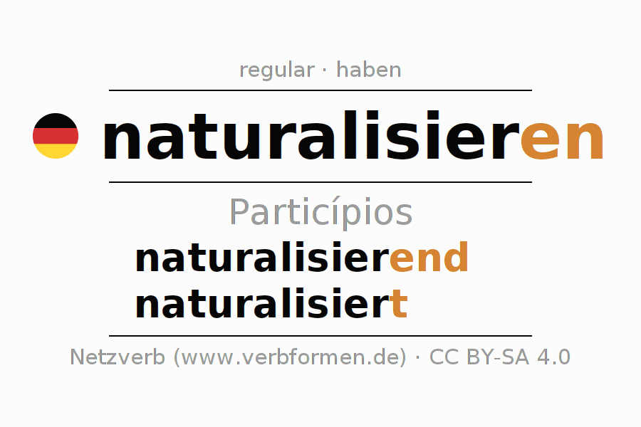 As formas do particípio para o verbo naturalisieren (naturalizar) são: naturalisierend, naturalisiert