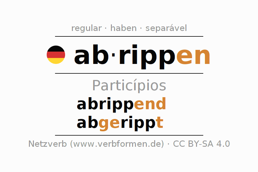 O verbo abrippen é totalmente conjugado em todas as pessoas e números no Particípio Presente Perfeito