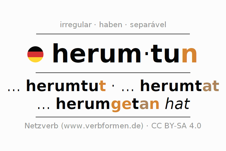 O verbo herumtun é totalmente conjugado em todas as pessoas e números no Particípio Presente Perfeito