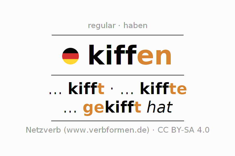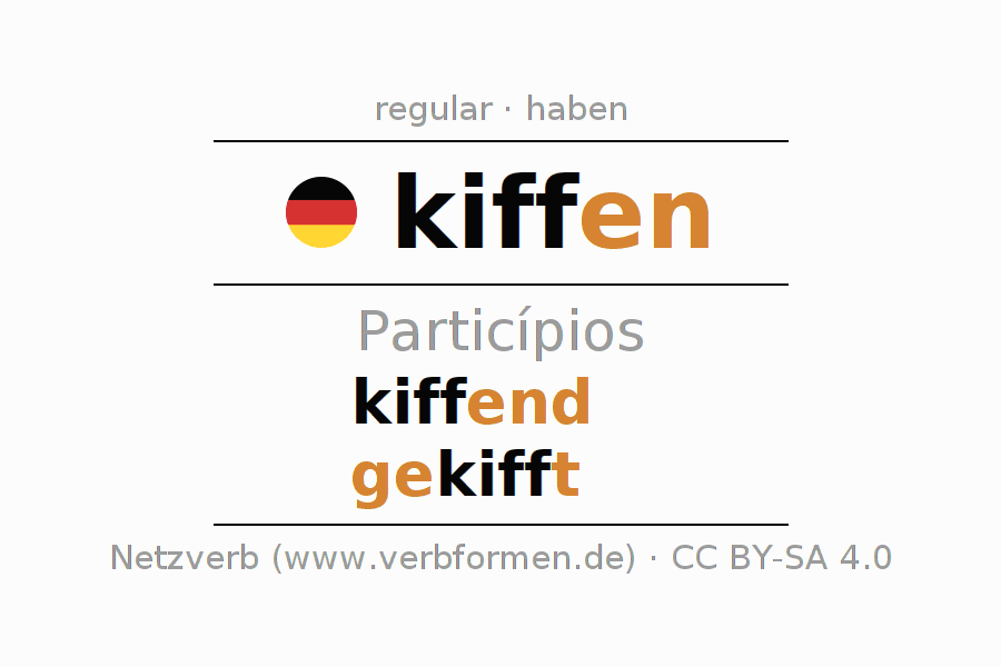 O verbo kiffen é totalmente conjugado em todas as pessoas e números no Particípio Presente Perfeito