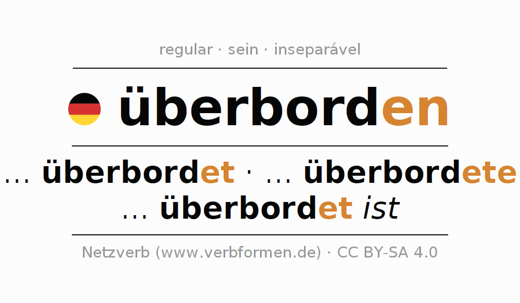 O verbo überborden (ist) é totalmente conjugado em todas as pessoas e números no Particípio Presente Perfeito