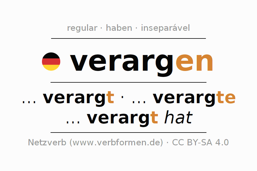 O verbo verargen é totalmente conjugado em todas as pessoas e números no Particípio Presente Perfeito