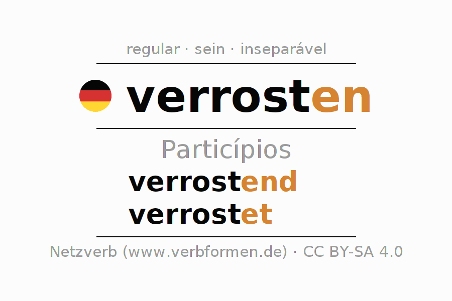 O verbo verrosten é totalmente conjugado em todas as pessoas e números no Particípio Presente Perfeito