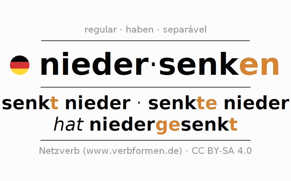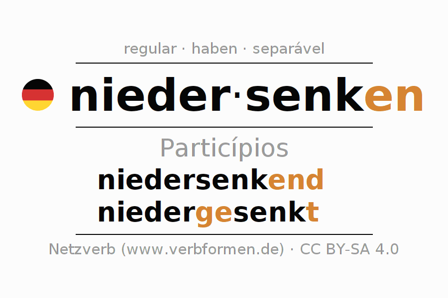As formas do particípio para o verbo niedersenken (baixar, inclinar) são: niedersenkend, niedergesenkt