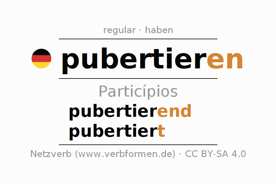 As formas do particípio para o verbo pubertieren (estar na puberdade, puberdade) são: pubertierend, pubertiert