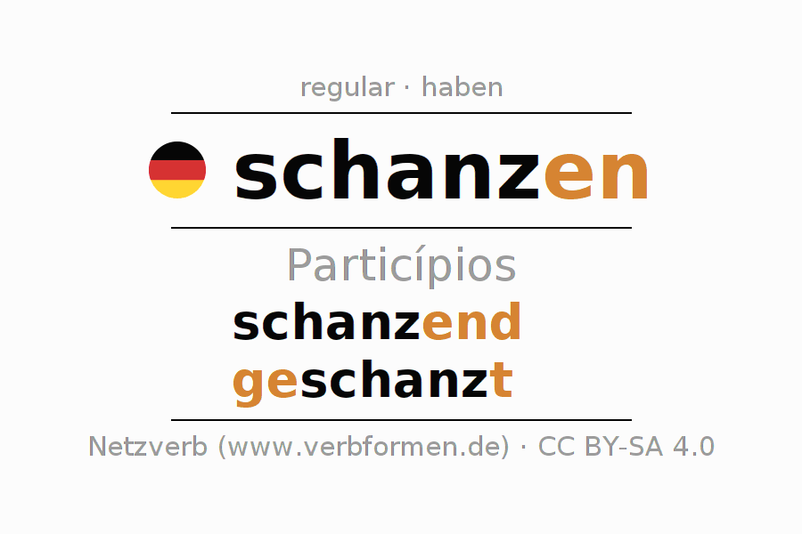 O verbo schanzen é totalmente conjugado em todas as pessoas e números no Particípio Presente Perfeito
