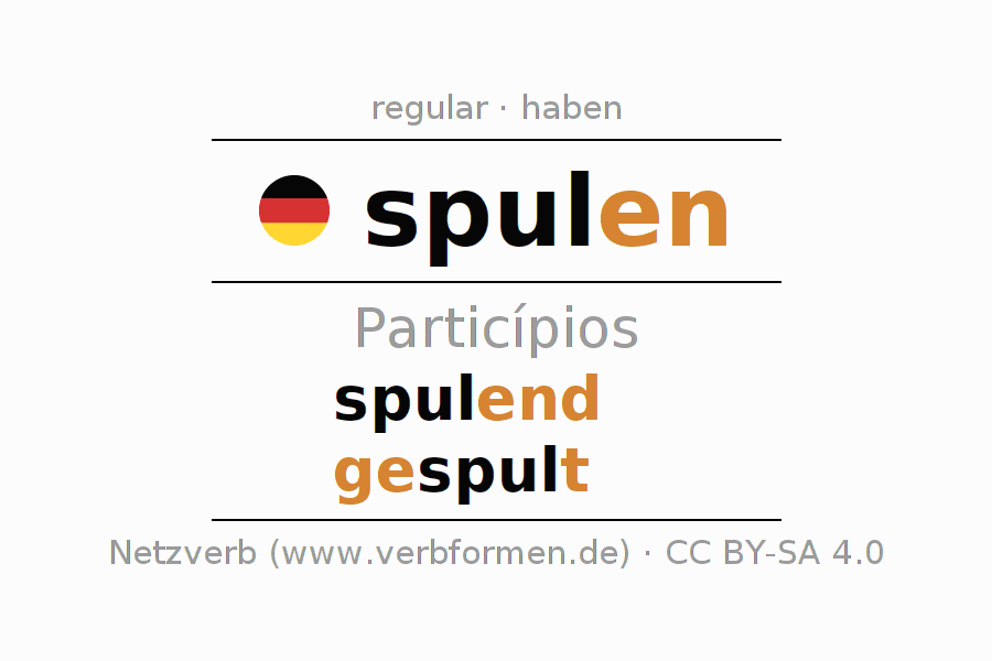 O verbo spulen é totalmente conjugado em todas as pessoas e números no Particípio Presente Perfeito