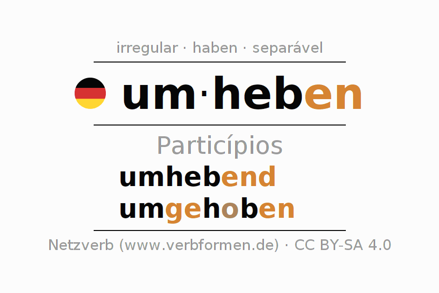 O verbo umheben é totalmente conjugado em todas as pessoas e números no Particípio Presente Perfeito