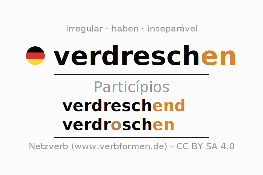 O verbo verdreschen é totalmente conjugado em todas as pessoas e números no Particípio Presente Perfeito