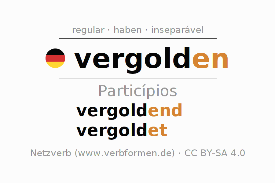 O verbo vergolden é totalmente conjugado em todas as pessoas e números no Particípio Presente Perfeito