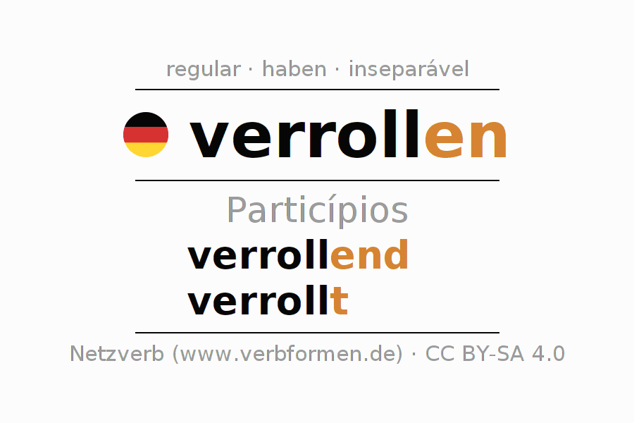 As formas do particípio para o verbo verrollen (bater, golpear) são: verrollend, verrollt