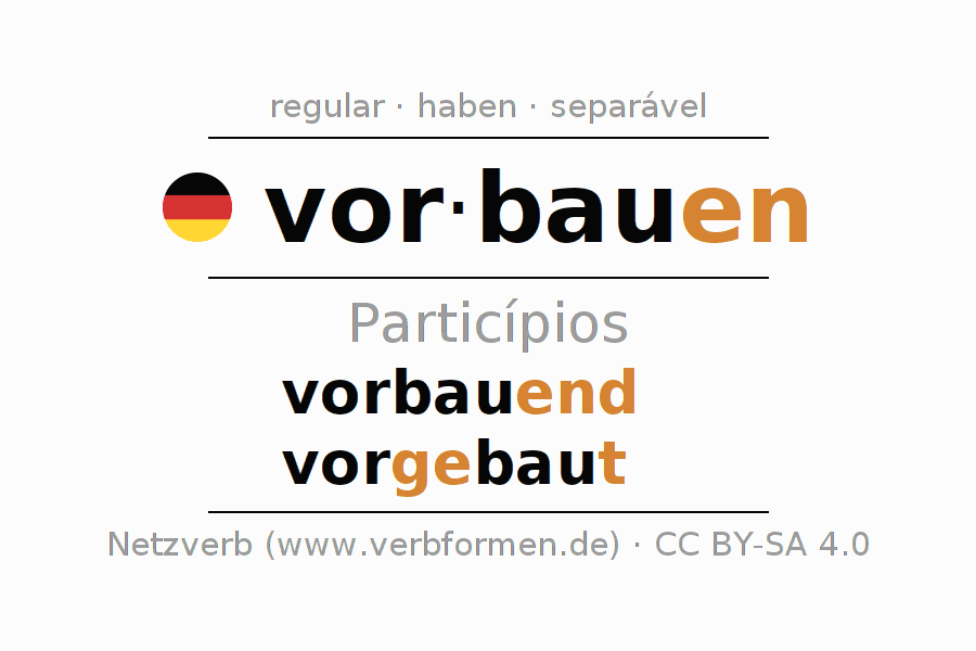 As formas do particípio para o verbo vorbauen (antecipar, construir) são: vorbauend, vorgebaut