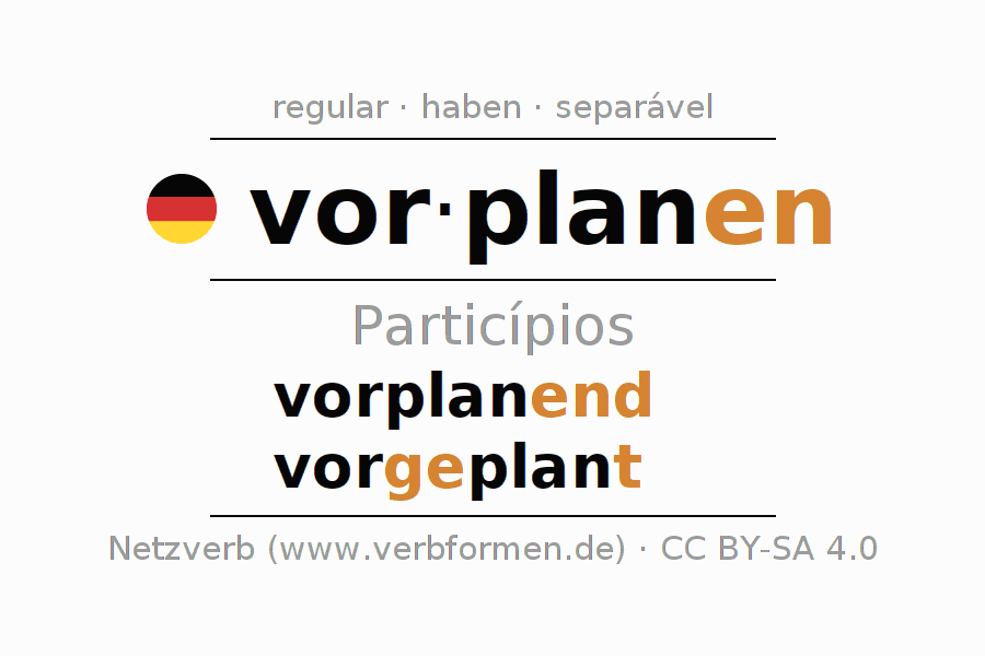 As formas do particípio para o verbo vorplanen (planear, planejamento antecipado) são: vorplanend, vorgeplant