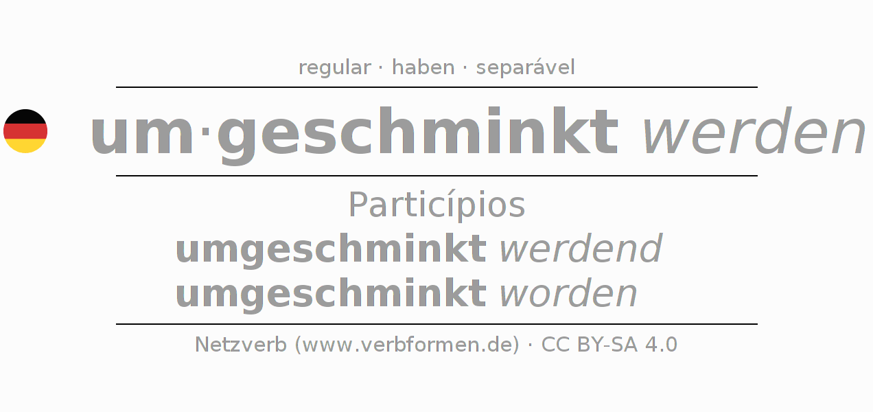 O verbo umschminken é totalmente conjugado em todas as pessoas e números no Particípio Presente Perfeito
