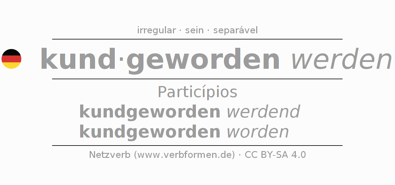 O verbo kundwerden é totalmente conjugado em todas as pessoas e números no Particípio Presente Perfeito