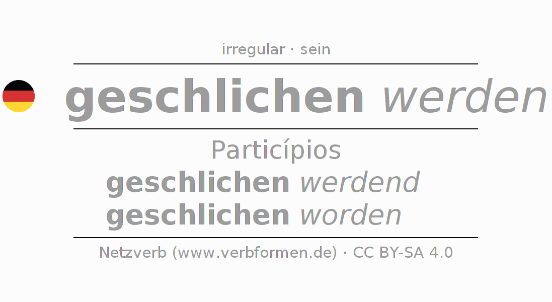 A conjugação do verbo schleichen no Voz Passiva Particípio Presente Perfeito palavra discurso é: geschlichen werdend, geschlichen worden.A formação dessas formas segue determinadas regras gramaticais. Os requisitos para a conjugação do verbo como forma verbal simples no schleichen do Particípio. Comentários ☆