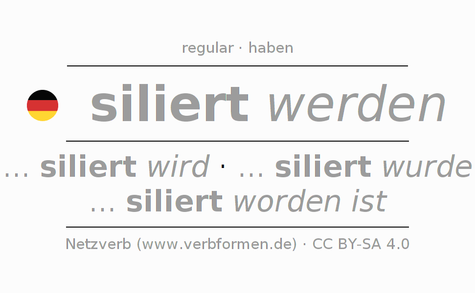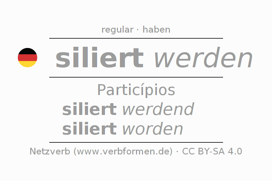 A conjugação do verbo silieren no Voz Passiva Particípio Presente Perfeito palavra discurso é: siliert werdend, siliert worden.A formação dessas formas segue determinadas regras gramaticais. Os requisitos para a conjugação do verbo como forma verbal simples no silieren do Particípio. Comentários ☆